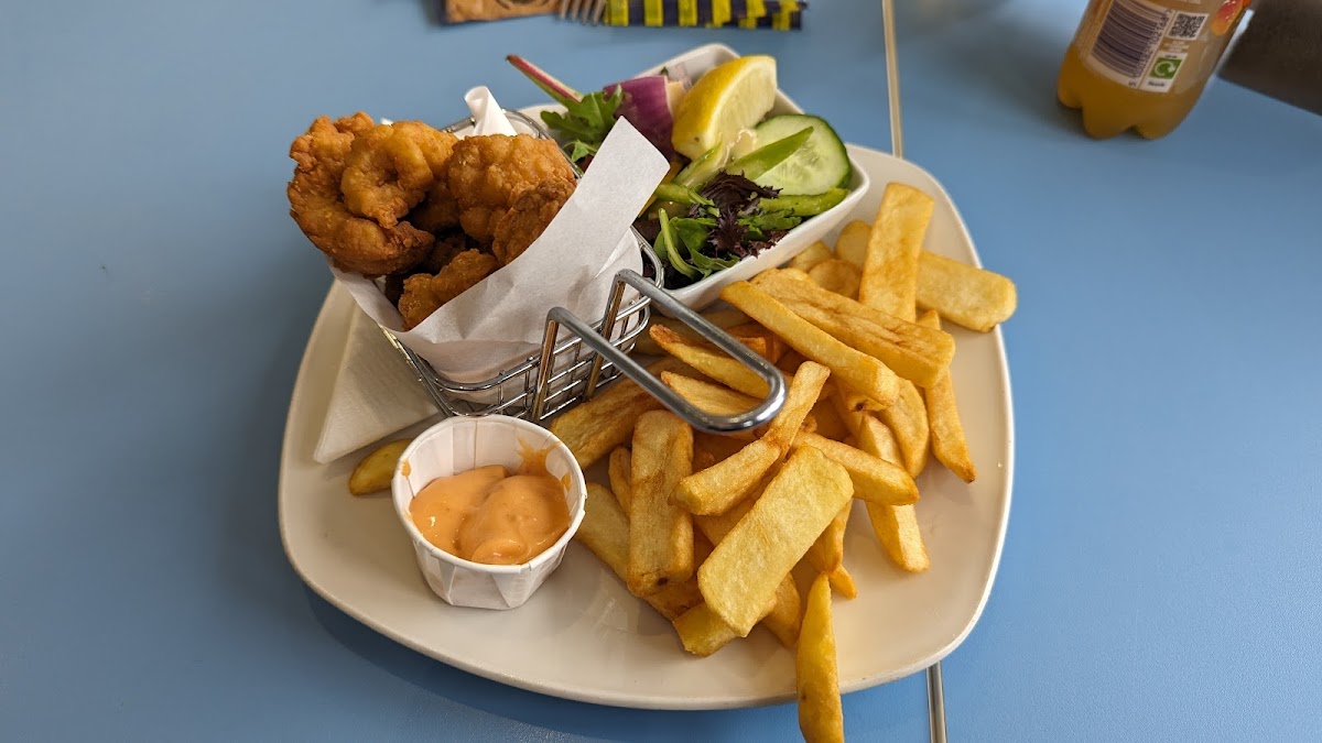 Great place for a lunch on a sunny day outside,or inside if it's cooler. Staff are helpful and friendly although it is a busy place and attracts all generations depending on the day of the week and time. There is plenty of choice on the menu and the children's menu is good quality food too. The café is licensed and serves a variety of hot and cold drinks. There is plenty of seating inside and out and a takeaway hatch for ice creams. Location is next to the beach and car park at the end of the promenade. Definitely worth a visit.